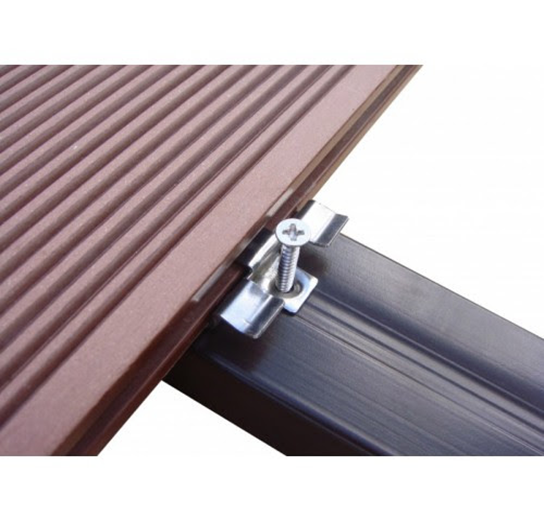 Профессиональный крепеж из нержавеющей стали толщиной в 1 мм специально разработан для крепления доски из ДПК к основанию пола. Решение зарекомендовало многолетним опытом эксплуатации в различных климатических условиях. Подвердило безусловноую надежность и долговечность крепежа из нержавеющей стали.