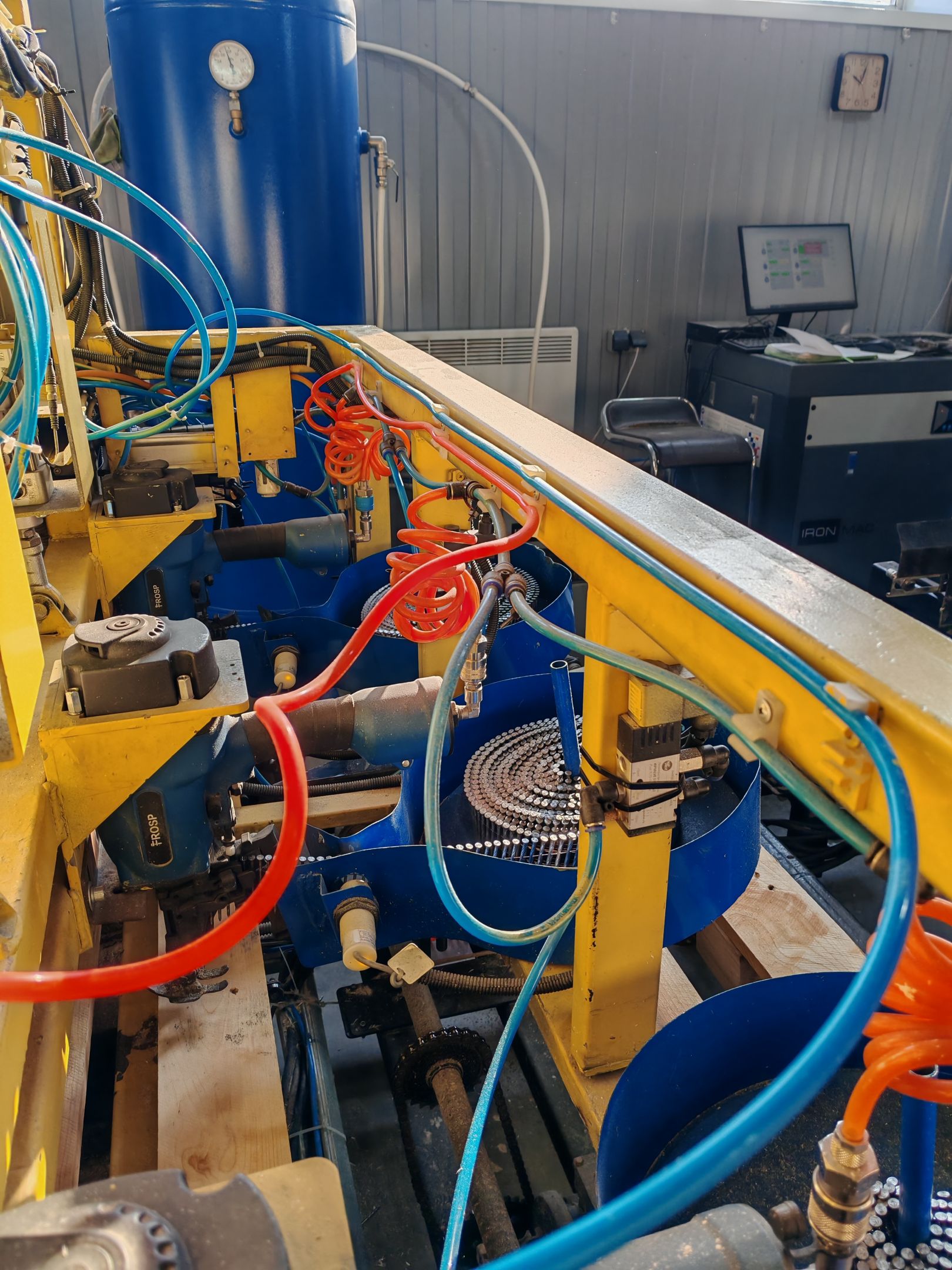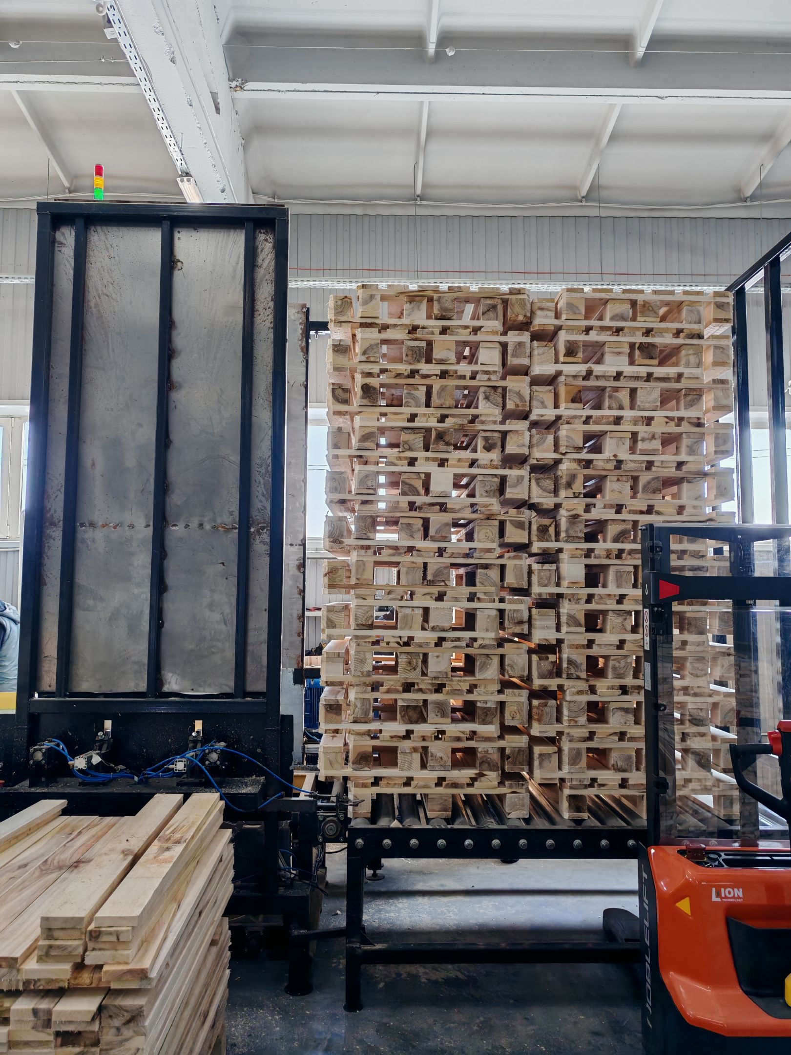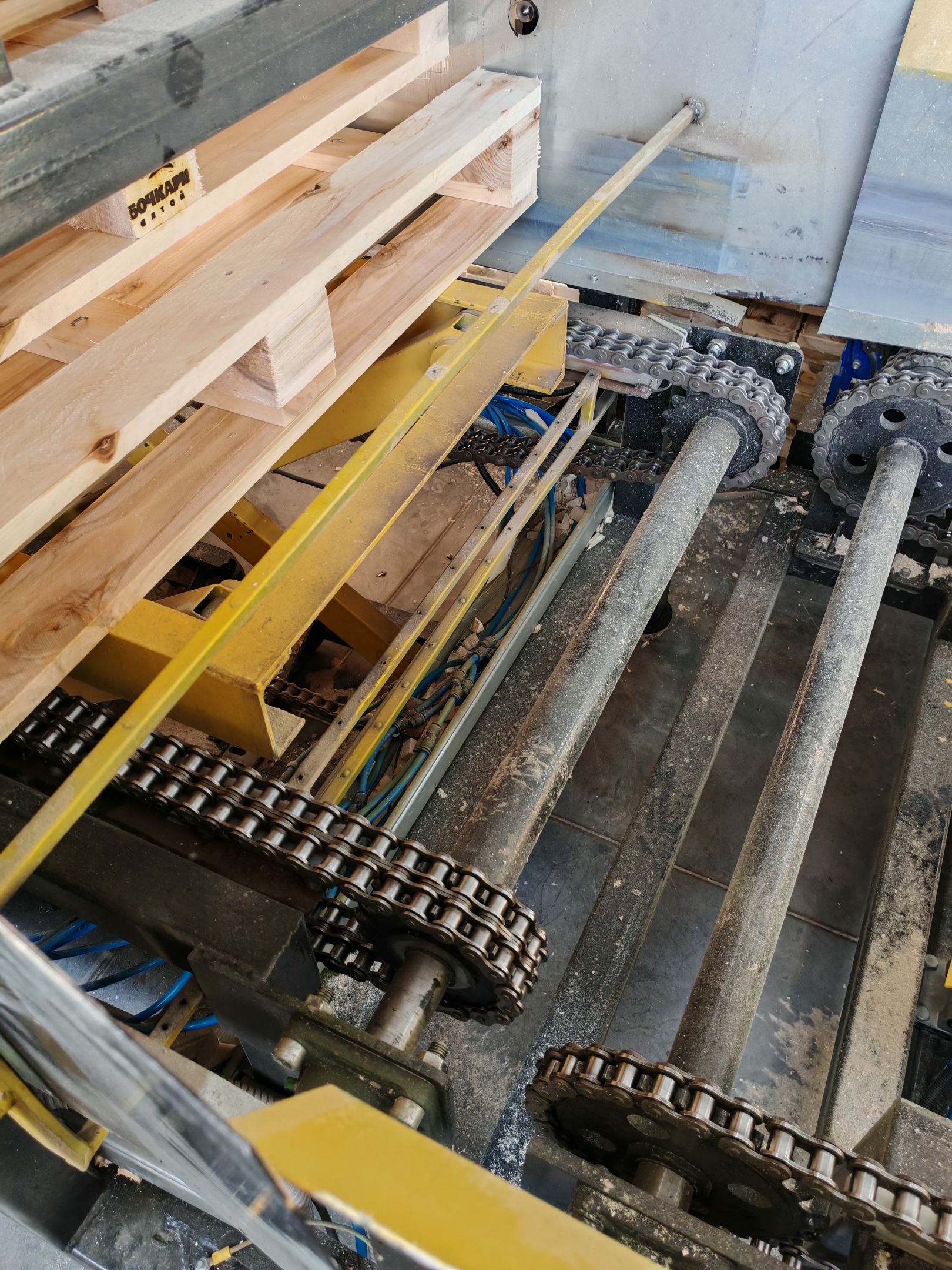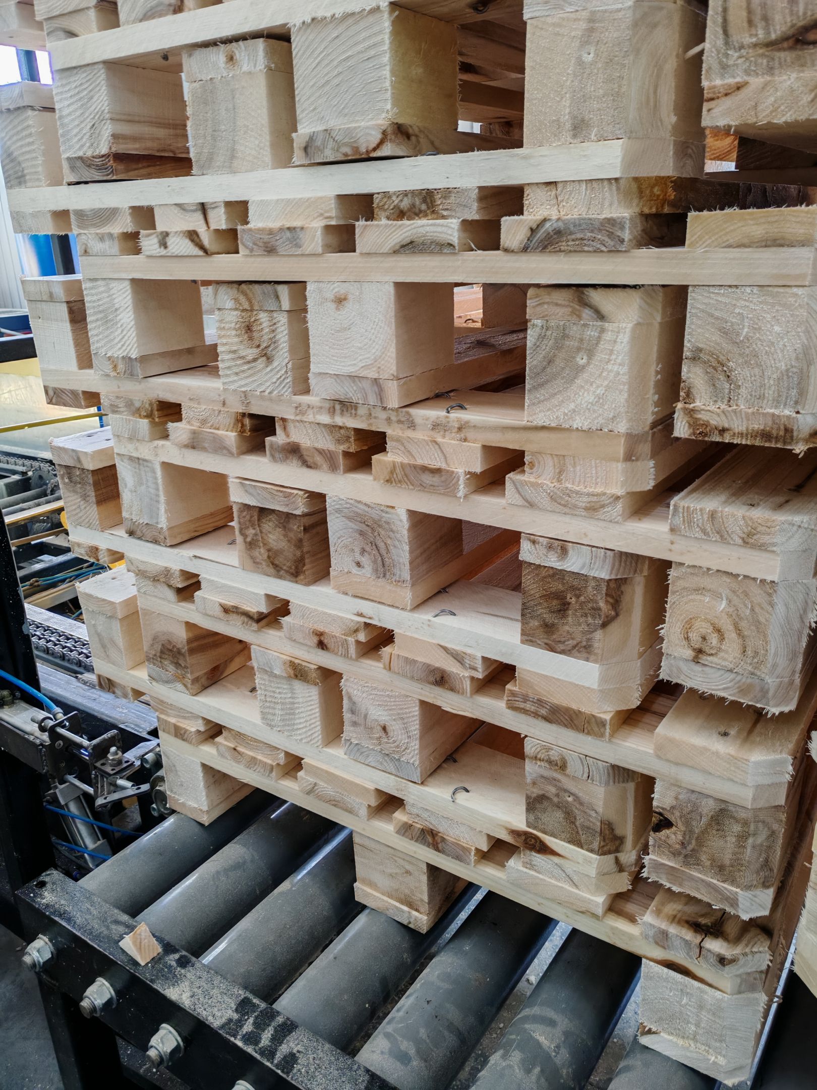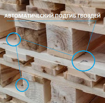 - Узел сборки поддонов (производится итоговая сборка поддона. Доски кроме трех (ручная подача) подаются