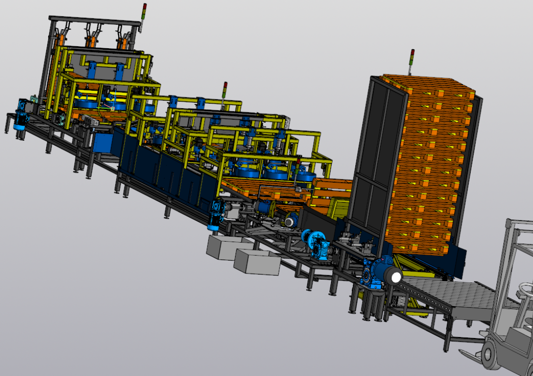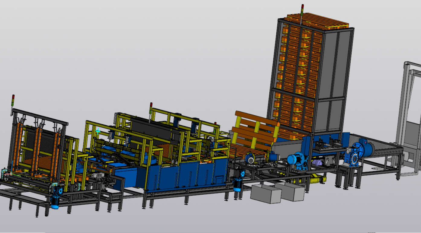 - Узел паллетирования (формирует паллету из 23 поддонов, вложенных друг в друга, сформированная